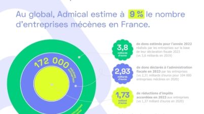 Cartographie et données du mécénat dans chaque région de France réalisées par Admical. Suite à la publication du Baromètre 2024, Admical et la Fédération nationale des Cai...